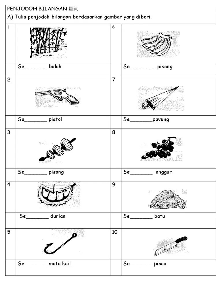 Penjodoh bilangan tahun 3 worksheet. Apakah penjodoh bilangan bagi gelang? Dalam sesuatu bahasa yang ada penjodoh bilangan, sesuatu kata nama boleh.